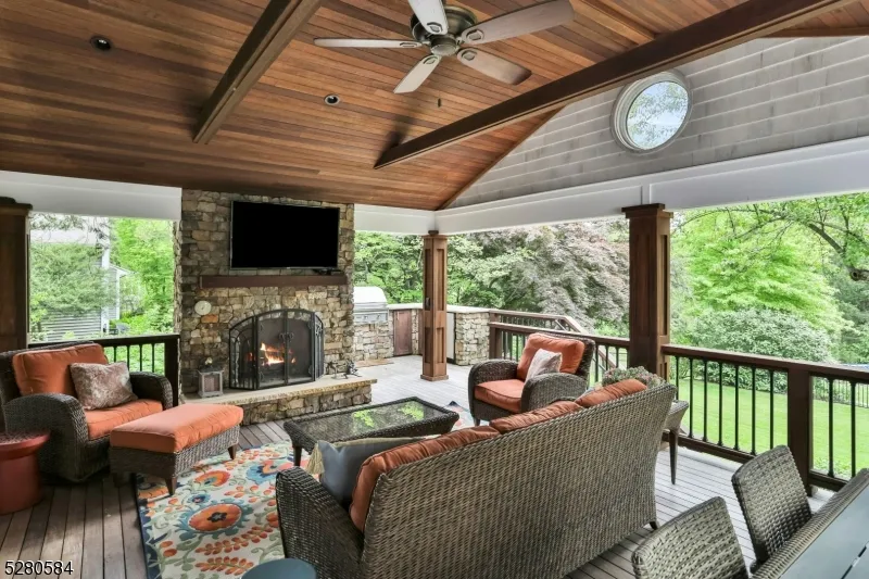Your very own private paradise awaits! This unique split-level home features four bedrooms and 2.1 bathrooms, complete with a new AC system. As you step inside, you're greeted by an inviting open kitchen and dining area, adorned with stainless steel appliances and brand new quartz countertops. Whether you're preparing gourmet meals or enjoying leisurely breakfasts, this space is perfect for creating culinary delights. After a long day, relax in the living room, where a wood-burning fireplace adds warmth and charm, ideal for cozy movie nights or quiet moments curled up with a good book. Adjacent to the living room is the first-floor office, drenched in natural light, offering a serene setting for work or study. Step outside and discover a backyard oasis! The meticulously landscaped, park-like grounds invite you to explore and unwind. The showstopper of this home is the gorgeous in-ground, Gunite, saltwater pool. Imagine refreshing dips on hot summer days or sitting poolside, surrounded by lush greenery and tranquility. Enhance your outdoor living experience with the expansive covered Ipe deck, featuring a built-in outdoor kitchen and gas fireplace, setting the stage for unforgettable gatherings and peaceful evenings under the stars. Don't miss this opportunity to own a slice of heaven in Basking Ridge!