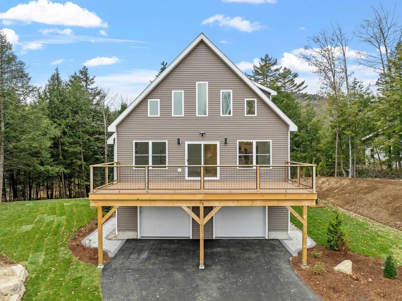 This stunning 3-bed, 4-bath single family home on over an acre offers both space and luxurious style, complete with a 2-car garage. Step inside to find a beautifully designed mudroom, perfect for all your outdoor gear. The open-concept living area boasts soaring ceilings and a chef's kitchen featuring quartz countertops, stainless steel appliances, custom cabinets with soft-close doors, and a large island ideal for gathering. The dining and living areas, anchored by a cozy gas fireplace, create a warm atmosphere that highlights the beauty of the White Mountains. Sliding doors lead to a spacious second-level deck, where you can unwind while taking in breathtaking mountain views. The main-level primary bedroom includes an en-suite bathroom with double sinks and a custom shower, while two additional spacious bedrooms share a full bath on the upper level. A loft overlooking the main living area could be used for overflow sleeping, office space or a secondary living area. Outside, enjoy a level, manicured backyard with a tree-lined perimeter and a beautiful patio featuring a fire pit—perfect for relaxing evenings with friends after a day of adventure. Great income potential with short-term rentals provided by excellent proximity to skiing at Loon Mountain and Waterville Valley, abundant hiking options and a short drive to Franconia Notch State Park, and a 10 minute drive to golf at either Owl's Nest or The Jack. This home offers the perfect blend of luxury and convenience!