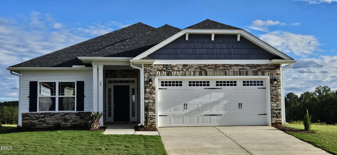 This exquisite and thoughtfully designed home features 4 bedrooms and 2 bathrooms across 1,830 square feet. This charming ranch home combines comfort, views and style, creating a space you'll be proud to call your own. You will quickly fall head over heels for the open concept living as you step through the entry foyer that flows into the dining room with its wainscoting. The family room with recessed lighting, ceiling fan and a gas fireplace provide the finishing touches for a perfect cozy environment. As you enter the kitchen you will be greeted by quartz countertops, upgraded stainless steel appliances, ceramic tile backsplash and a pantry.. Connecting to a charming breakfast nook with wainscoting you will feel right at home. The primary suite with its tray ceiling, crown molding, recessed lighting and ceiling fan will sweep you off your feet. The spa-like feeling when you enter the primary bath with its ceramic tile shower, garden tub for soaking after a hard day, dual vanities and walk in closet set the stage. Additionally you will find 3 extra bedrooms with generous sized closets and a full bathroom. This hidden gem of the home also features a finished two-car garage with door opener, separate laundry room and a covered back lanai perfect for enjoying those serene North Carolina nights. Pricing and incentives may change at any time without notice. We do not sell to investors!