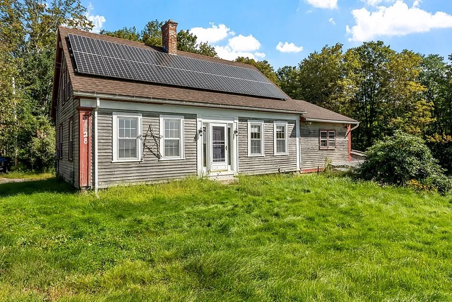 Attention flippers, contractors, or buyers with cash or a construction loan! Overlooking a beautiful, New England field you will find this 3BD, 1 Bath antique colonial ready for new beginnings. Wood floors can be found throughout the home as well as wood beams. Spacious living room and eat in kitchen. 1st floor master bedroom with walk in closet. Separate two car garages with power and two additional garage bays behind the home for storage. Updated electric system and roof. The red barn has two floors and ample power to work in or store equipment. Also included are two sheds for even more storage space. The walkout basement is partially finished with a bonus room. The buyer s responsible for installing the septic system. Perk test completed. Rented Solar Panels. Sold As Is.