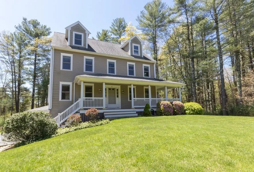 Spacious, Private & Move-In Ready! Imagine sipping your favorite beverage on this wrap around farmers porch or the sunny back deck, enjoy the scenic park like yard surrounded by conservation land. Come inside there is plenty of room to spread out in this meticulously maintained 2400 sqft, 4 bedroom Colonial. Entertain friends and family in the over-sized eat in kitchen with a large center island, granite counter tops, and maple cabinets. The polished hardwood floors run throughout the first floor and premium ceramic tiles in the 2.5 baths. Upstairs, a generous master suite with walk in closet and private master bath. The 4th bedroom is on the over-sized 3rd floor includes a bonus room to use as you wish; an office, a home gym, or playroom. Features 2 zones central air conditioning, 1st floor laundry & wired for a generator. More storage space in the walkout basement with 2 car garage. Conveniently located to shopping, the commuter rail, and easy highway access.