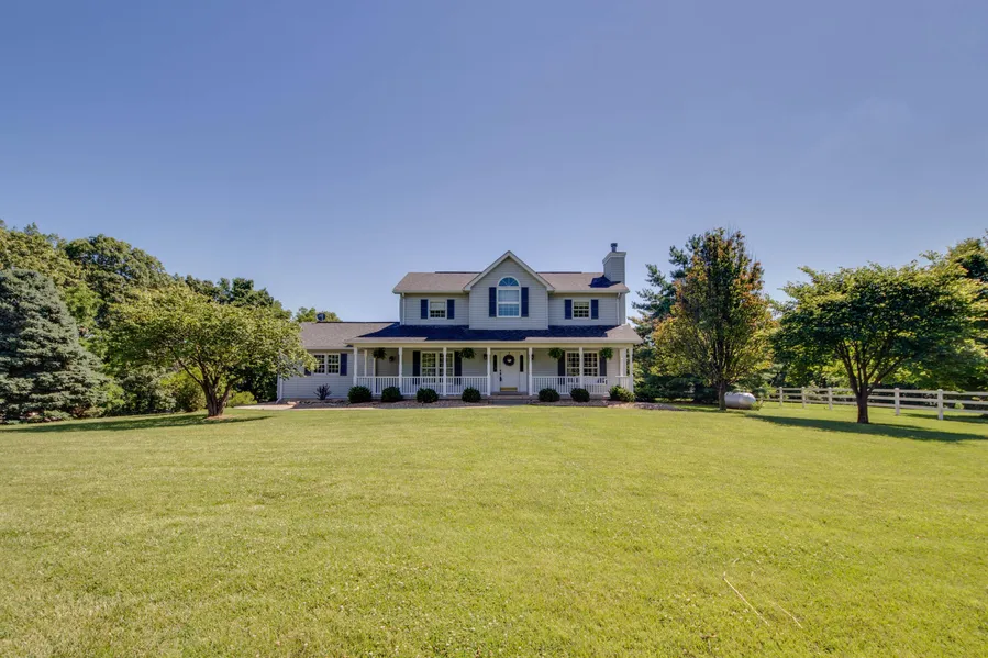 This spacious 3 bedroom, 2 and a half bathroom home is situated at the front of this picturesque, partially wooded, 26+/- acre property. Beautiful landscaping surrounds the patio and deck area in the backyard behind the 2 car attached garage, and overlooks the acreage beyond the house. This 2300 sq. ft gem features a sitting room with gas fireplace, updated kitchen with breakfast bar, wood floors, large bedrooms, and a nice master suite. Enjoy country living while sitting on the covered front porch or entertaining on the back deck. This property is a recreational paradise.
