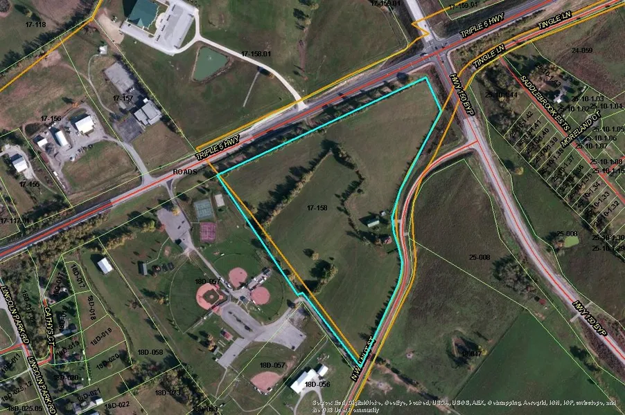 Frontage on Hwy 555 & Hwy 150 Bypass, 26.7 acres sits in corner of 3 highways. Excellent commercial opportunity! Will divide! Buy it as a whole for $525,000.