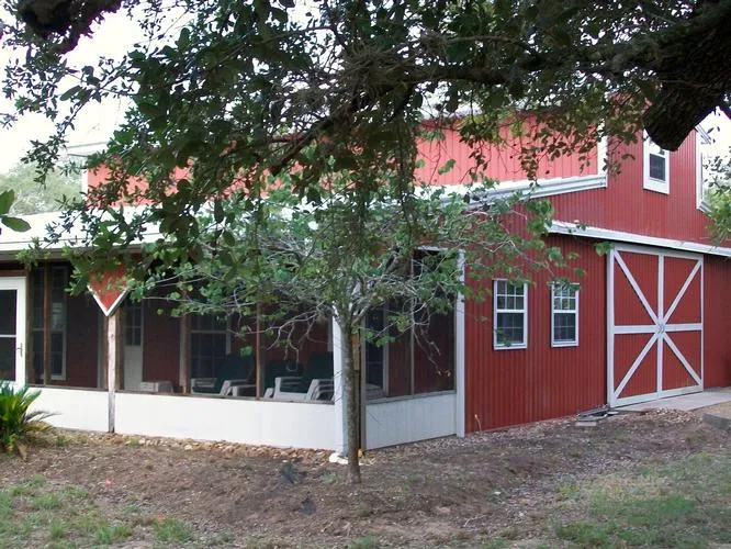 This gorgeous 26 acre tract is wildlife exempt with a Barndominium, and an awesome 2 acre lake. The property is covered with massive live oak trees and is nestled along picturesque Miller Creek. Come sit in the peace and quiet and enjoy nature's best from the 40 foot screened in porch. With an abundance of wildlife and a lake view this lovely country setting offers many features to include;