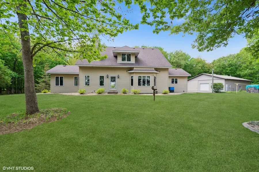 Secluded Lake Home Living on 26.6 Acres of Your Own Private Paradise. If you are looking for a home in the country and on a lake, you have hit the jackpot. This property is a hidden gem and can offer you that space away from it all. The moment you pull up the long private driveway, you will feel at home. The home sits back on 26.6 private acres with a scenic view of German Lake. You have approximately 840 feet of lakeshore living. The main floor includes a living room with vaulted ceilings, a private den, a primary bedroom and bathroom, a laundry room, an additional bathroom for your guests, a spacious kitchen, and a large butler's pantry just off the kitchen. The loft area includes another full bathroom and two additional bedrooms. If you're looking for space to store your toys, you will love the large 40x64 outbuilding. Part of this building is finished and heated by a wood-burning stove. The property is nicely wooded for your privacy, while also having the perfect blend of open fields and over 600 pines that have been planted. You will see plenty of wildlife on this property, from deer, turkeys, and pheasants, not to mention all the waterfowl you will get to enjoy on German Lake. If you love kayaking, boating, fishing, and time on the water, you won't be disappointed. Come check this property out; it won't last long.