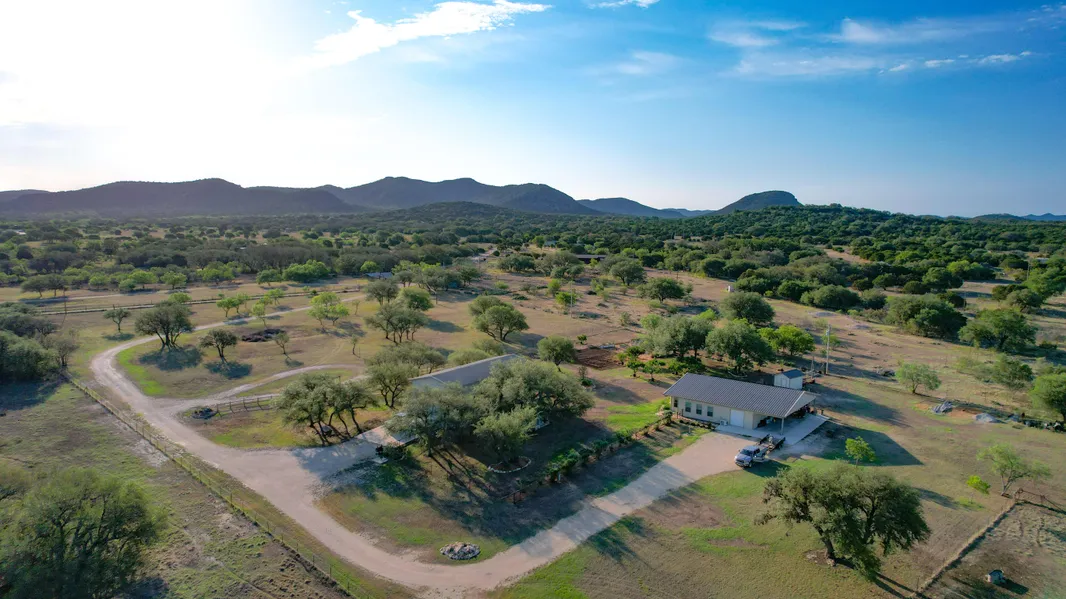Improvements: A custom barndominium-style, tastefully-finished main home offers a large open living & kitchen area, a master suite and guest bedroom, loft, large pantry/office area, and 2 full baths as well as a huge garage/shop portion which could easily be absorbed as additional living space if desired. A covered front patio allows for great views of the sunrises over the nearby hills, and a back patio complete with hot tub is the perfect place to enjoy a hill country evening. The second barndominium functions as a guest/bunkhouse with a full kitchen, large bathroom w/walk-in shower, huge great room, and tons of foam-insulated shop space as well as a greenhouse accessible from the shop and covered parking for vehicles and/or equipment. 38 large solar panels on the guest house provide electricity to run the houses and a contract is in place to sell the unused power back to the power company, straight through the panels and back into the grid.
