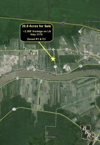 26.8275 Acre tract ready for development with ~3,388' of frontage along LA Hwy 3179. This is the north/south roadway between LA Hwy 61 (Airline Hwy) and LA Hwy 44 (River Road). This is listed by an OWNER-AGENT. The southern 9.5 acres (1,100' of frontage on Hwy 3179) is zoned C3 - Commercial District 3 while the northern 17.3 acres is zoned R1 - Single Family Residential (2,288' on Hwy 3179).