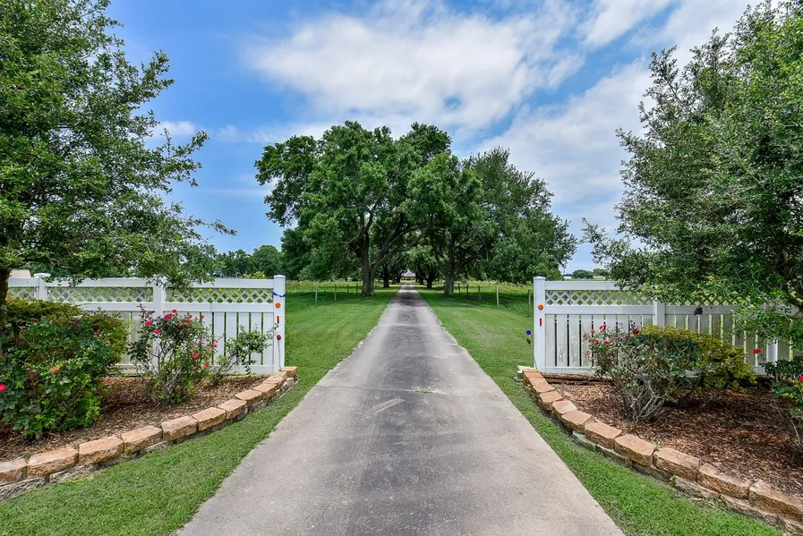 The ultimate in country living! Enter this property under an umbrella of trees leading you to this gorgeous home with a beautiful view of the many mature pecan and live oaks! The foyer allows access to the entire home. To the left is the bedroom wing featuring a stunning master with a one of a kind dual vanity in the spacious bathroom, a 2nd bedroom and an office that could be used as an additional bedroom. To the right, you will find not only the kitchen, breakfast and dining area, but also a separate guest suite with convenient access to the outdoors! A unique, custom, floor to ceiling fireplace separates the foyer from the immense family room where everyone can enjoy the spaciousness of this large room emphasized by cathedral ceilings and wooden beams. Enjoy the view of the 27 acre property while overlooking the backyard from a wall of windows spanning the entire width of the room! Also features a large garage apartment with over 600+ sf of living space! DID NOT FLOOD!
