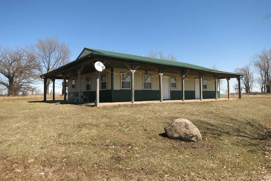The cabin is a 30X48 metal building with 840 sq. ft. of living space that includes a kitchen/living room, bath and shower, 2 bedrooms and a 20x30 attached garage with overhead door. There is a wraparound porch to sit and watch the deer and overlooks a nice pond. The cabin sits at the end of a good gravel road. This farm really does have it all. Come take a look, I don't think you will be disappointed.