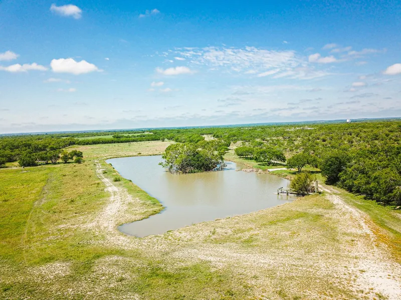 Custom high fenced hunting property only 1 hour South of San Antonio and just a little over an hour North of Corpus Christi. This unique ranch offers year round hunting with numerous exotic wildlife and a beautiful 3,265sqft custom home (built in 2022). The highlights of the ranch are the quality of the animals that exists here as well as the home. The home is a 3 bedroom 3.5 bath beautifully designed home. Granite counter tops, plantation window shutters, natural wood custom cabinetry and fantastic ceramic wood look tile floors lead you throughout the home. Coffered ceilings in every room with custom woodwork and antler accented lighting draws your eye from floor to ceiling. An almost 625sqft living room welcomes you into the home. The living room has a magnificent floor to ceiling stone gas fireplace, a natural wood wainscoting surround and a deep coffered custom wood ceiling. Just off the living room is a full wet bar with a multiple bottle wine rack and ample under cabinet storage. The bar area also includes a beverage fridge and sink. Moving from the wet bar is a the dining area and cooks kitchen. The kitchen has ample upper and lower cabinet storage a center island, 6 burner high end range, two pantries and a built in oven and microwave. The home has a half bath and nice utility room just off of the kitchen. The homes 3 bedrooms are made for housing guests. Each bedroom has its own, private ensuite. The Master bedroom has a large ensuite bath with a spacious 3 head, rain maker type shower as well as a grand walk-in closet with custom built-ins.