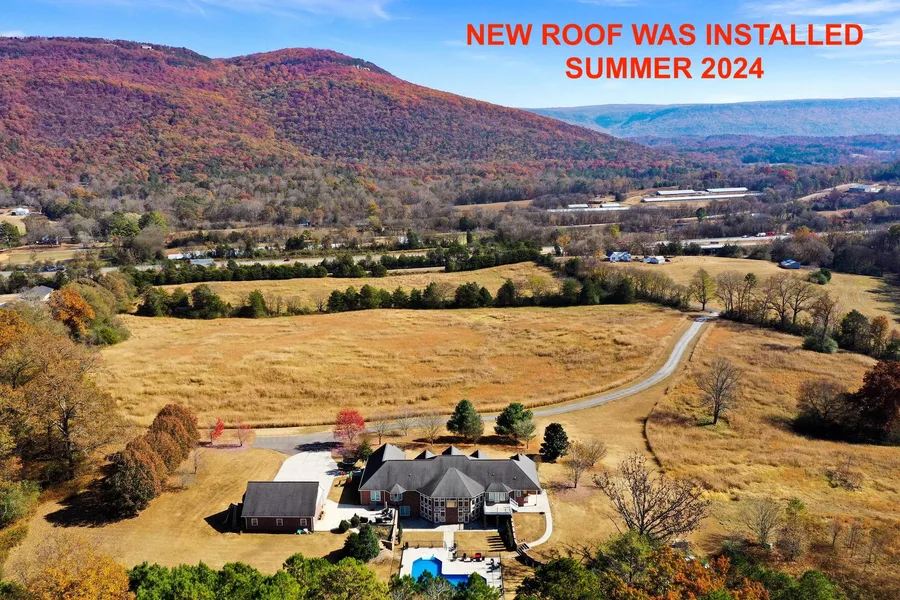 SOLD!! NEW ROOF WAS INSTALLED JUNE 2024. Make this 47.75 +/- acres with excellent views of Lookout Mountain your private retreat ideal for entertaining or a large family with open land, timberland and a 5 bedroom, 3 and one half bathroom four sided brick home with approximately 6,384 square feet and a pool. This property is approximately 30 minutes from Chattanooga, Tennessee. This home offers 3 fireplaces with gas logs, large great room with fireplace and a wall of windows on the rear of the home; open kitchen with double ovens, island, warming drawer, breakfast area ,and opens to the keeping room with fireplace and access to upper patio; large dining room; activity room; large laundry room; master suite with private patio, his and her closets, double vanities, separate tub, and shower with dual shower heads; 4 of the 5 bedrooms provide outside access for fire safety. Downstairs you will find a media room with wet bar and the third fireplace; game room (currently housing a pool table); and a bedroom with a full bathroom. Walk outside from the terrace level and you find a covered porch, and fenced in salt water pool. Additional amenities include a 3 car detached garage. Approximately half of the property is open land and would make an excellent area for pasture for horse or cattle. The balance of the land is in a natural mixture of mainly hardwoods with some pines. There is over an estimated 3,400 feet of paved road frontage on 3 roads making this property ideal for future divisions. There is no zoning in Dade County, Georgia. Utilities: power, Dade County Water, and telephone. Gas provided via a propane tank. Year Built: 2004. Topography: Rolling to Gently Rolling. 29 miles from Chattanooga, Tennessee 128 miles from Atlanta, Georgia 121 miles from Birmingham, Alabama