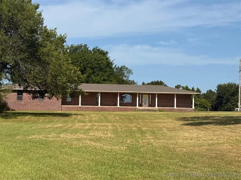 Enjoy some space with 4.69 acres featuring a 2003 full brick built home with 1904 sq ft of living space (sqft based on tax records) with a 3car garage & storm shelter inside. This home has welcoming large front porch. Inside includes three bedrooms, office (could be used as 4th bedroom), large windows to enjoy the country living. Master bedroom is super sized.