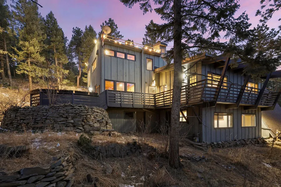 A desirable Mount Vernon Country Club Mid Century Modern exciting updated 4 br, 3 ba home on a 1.8 acres ! Open and light with natural finishes from concrete, and handmade tile floors, gleaming hardwoods, rock accents, and exposed beams bringing the outdoors in. Soaring windows and skylights frame a mountainside setting of towering trees, blue skies and massive rock outcroppings. A great room design with living and dining spaces open to a sleek updated kitchen featuring new Thermador top of the line appliances, leathered bronzite granite counters, a sunspace breakfast nook with custom built in benches and table, and wonderful light fixtures ( inc Design within Reach! ). A main floor 2 story sunroom with an overlooking loft office offers scenic views and streaming sun, opening to a fenced yard. A private master suite with floor to ceiling glass, a spa like open bath with a soak tub, rain shower , skylight and ledges for plant lovers! The lower level walk out family room is ideal for media/music/ games with a wood stove and ample storage. MVCC, 100 years of tradition and history! A close community of 100 homes with 1200+ acres of open space trails. A. celebrated Mount Vernon Club with stunning vistas and fine and casual dining, pool and tennis complex, wellness center and community horse facility with 150 acre pasture, barn,corral, track room, and arena.... all within walking distance of this remarkable home. Location , Location, Location! Foothills living less than 15 min to RTD light rail from Golden to downtown and DIA, Colorado Mills Mall, DTC, Denver Federal center. Go to www.mountvernoncc.com for more information.