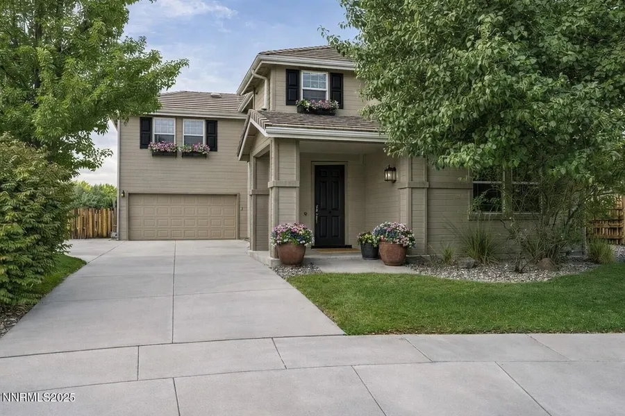 Welcome to your dream home in Wingfield Springs! Nestled in a serene Sparks community near Red Hawk Gold Course, this stunning 4 bedroom, 3 bathroom home offers over 2,500 Sq ft of living space. Step inside to a grand living/dining area with high ceilings and plenty of light. The kitchen boasts a breakfast bar, pantry, and sunny nook that flows into the family room where there's a cozy gas-log fireplace. A main-level guest suite adds convenience and flexibility for visitors or multi-generational living. Upstairs discover a spacious loft and an additional full game/media room... perfect for movie nights, a home office or playroom. The primary suite is your personal retreat, featuring a garden tub, walk-in closet and lovely views. Outside, enjoy an expansive level landscaped yard with mature fruit trees, and plenty of space for gatherings, gardening or just a quiet afternoon relaxing. With modern utilities, thoughtful upgrades and a community that balances tranquility with accessibility, this home is truly move-in ready.