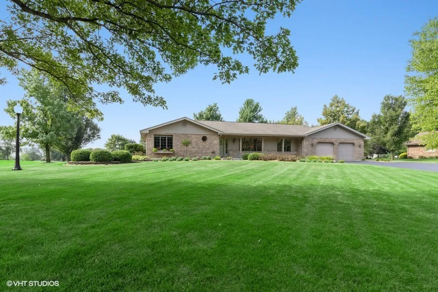 A classic brick ranch home is set in a prime, unincorporated New Lenox location. This home is the embodiment of design and elegance artfully reinvented. Tucked away in Riivendell Estates, this gorgeous, impeccably maintained home lives beautifully inside and out with a fabulous open floor plan, expansive rooms and soaring ceilings. The home is designed to commune with nature from every room reminiscent of Frank Lloyd Wright's concept of bring the outside to the inside. A lovely, welcoming foyer leads directly into the impressive living room and formal dining room with cathedral ceilings. There is a gas log fireplace with remote starter and a wall of windows in the living room. The impressive grounds with mature trees provide an excellent way to enjoy the natural beauty and deer habitat. Adjacent to both the living room and the dining room, is the spectacular kitchen with huge skylight and includes a breakfast room. This timeless and quality home boasts 3 spacious bedrooms, 3 full bathrooms, and all bedrooms have stunning views of the professionally landscaped 1.1 acre lot. The family room/sunroom has large windows on all 3 sides and overlooks the large patio, complete with a beautiful pergola. There is also a main level laundry room for convenience with an exit to an enclosed dog run with 6' high PVC fence and astroturf floor. An oversized attached 2.5 car garage has built-ins, as well as a garden shed for even more storage. Enjoy the beauty and peacefulness of this perfect retreat in all seasons. The home offers privacy and amenities desired by today's buyers. There is a security system, surround sound system, reverse osmosis, iron filter, water softener, whole house fan, whole house generator, sprinkler system and so much more! This one-of-kind home exudes style and class, topped off with a perfect flow. Just minutes from award winning New Lenox schools, shopping, restaurants, parks, expressways and public transportation. Don't miss this opportunity to call this property yours. Truly a must see!