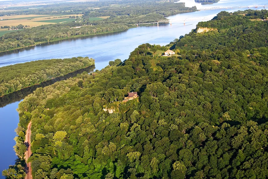 Located in Pike County, MO, just over one hour north of St. Louis, MO near Louisiana MO. From the moment you pull through the electronic gated entry you will know that you have entered a place that is very special. This 261 acre +/- estate sits on top of bluffs that overlook the Salt and Mississippi Rivers where you can see for miles.