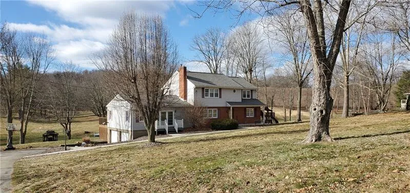 If country living is what you want, this is the place to be. This huge 4 bedroom has loads of charm & sq. footage. Toasty winter fun with Brick fireplace in the livingroom or pellet stove in the unbelievable familyroom. Watch snowflakes fall on the skylights or view the deer, fox, squirrels in your backyard from the back wall of windows. Open kitchen-diningroom was designed with hickory cabinets, 2 pantries, a coffee bar & ceramic floors. It's fully applianced. You'll spend summers on your 65' deck, picnic pavilion, gazebo, playset, and 4 acres of wonderful land. The 1st floor bedroom can be a playroom, office or home gym. Climb the steps to 3 bedrooms and full bath. Each room has it's own charm and a walk-in closet in the master. Full bath has been upgraded with double bowl sink. Downstairs is a large gameroom and did I mention there's a laundryroom on the 1st & lower level? Workshop, storage and large 2 car garage. Just minutes to I-70 & Rte 51. The sellers gift you an HSA warranty.