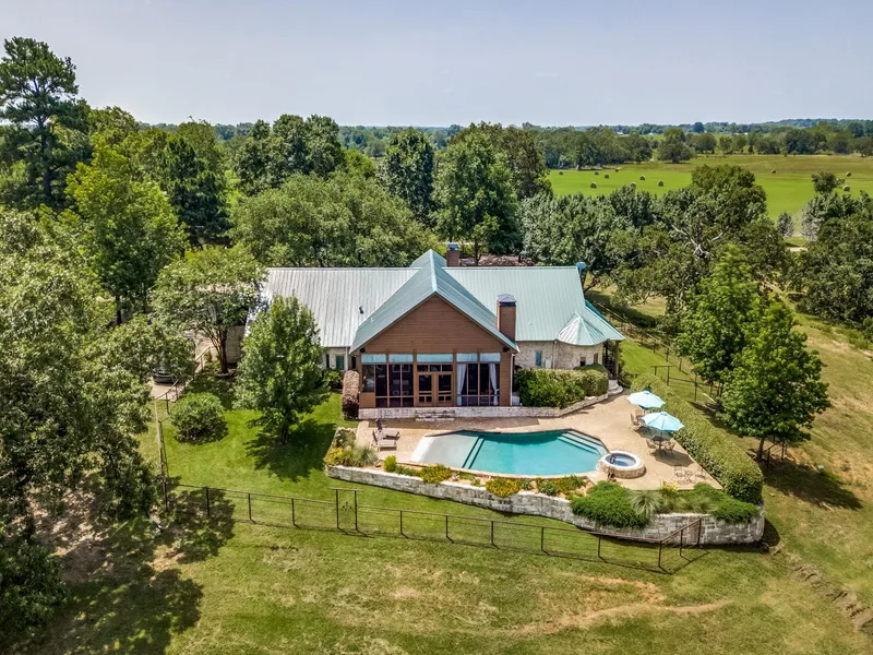 IN-CONTRACT - Wonderful weekend getaway or primary residence. 1.15 hrs from Dallas in the rolling tree covered hills between Canton and Grand Saline. Stone and cedar home, hill country lodge style, with plenty of privacy and outstanding tranquil views. Pool and spa. Open plan, gourmet kitchen deluxe and an outdoor screened in living area with a fireplace and kitchen nature lovers will truly enjoy. 15X12 garden shed/water well house and a 40X30 equipment barn with an overhang. Set of pens, storm shelter and fenced garden area to sit and enjoy the undisturbed calmness. Good balance of trees, pasture and topography. Two ponds. Area by the creek to construct a lake. Gated entry and tree-lined concrete driveway.