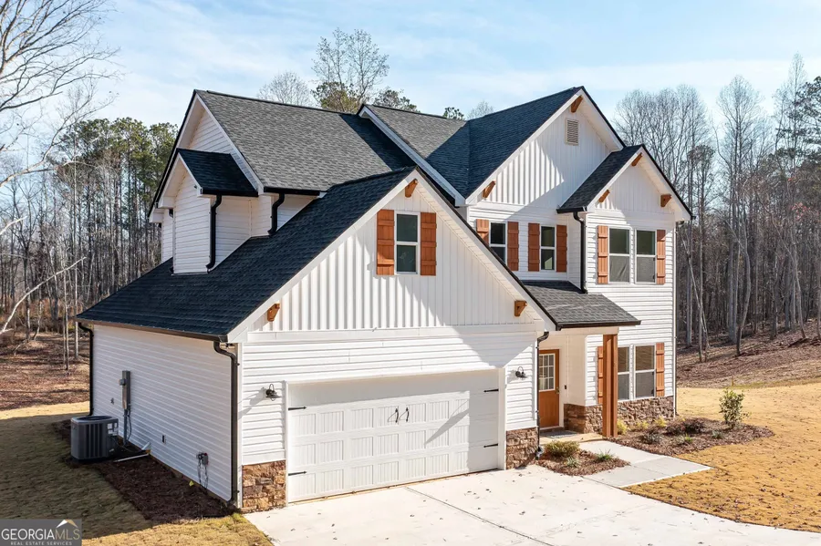 Builder says let's make deal! Stunning 2-Story Farmhouse on 5 Scenic Acres. Welcome to this stunning 3-bedroom, 2.5-bath farmhouse-style home that blends rustic charm with modern comfort. Nestled on 5 peaceful acres, this beautifully designed residence also features a private dedicated office space, loft area, and an open-concept layout perfect for both everyday living and entertaining. Step inside through a welcoming foyer that leads past a formal dining room, a convenient half bath, and a coat closet, opening into a true chef's kitchen. Enjoy white cabinetry, a large center island, a farmhouse sink, built-in display cabinet and buffet, modern backsplash, and stainless steel appliances-including range, microwave, and dishwasher. The spacious eat-in kitchen overlooks the family room highlighted by an electric fireplace with a marble surround and a tastefully shipped lap accented wall. Luxury vinyl plank (LVP) flooring runs throughout the main level, complemented by beautiful lighting fixtures and access to a back patio with views of your expansive property. Upstairs, the primary suite impresses with a tray ceiling, eye-catching accent wall, and a generous walk-in closet. The en-suite bath offers a double vanity, large soaking tub, tiled accent walk-in shower with bench seating, and ceramic tile floors. Two additional spacious bedrooms share a full bath and offer ample closet space. A versatile loft area and a dedicated laundry room complete the upstairs living space. Additional features include a 2-car garage with automatic opener and a custom-built hall tree for added convenience and style. This is country living at its finest-don't miss your chance to make this dream home your reality! TRACT 1 on Survey. Preferred lender and builder incentives available. USDA Loan with 100% Financing Available.