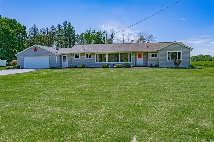 Spacious 3BR, 1.5 BATH Ranch situated on private one acre parcel. Kitchen includes all appliances and opens to attached dining room, leading to LR featuring vaulted ceiling & WBFP. Bedrooms are privately situated w/full bath. First floor laundry includes washer & dryer. Garage has been converted to semi permanent living space for entertaining and three season enjoyment. Also large stamped patio featuring above ground pool and hot tub too. Updates include kitchen flooring 2021, Navien combination boiler & 16x10 shed 2020, Hot tub 2016, 24' pool 2015, windows 2014, roof 2013. Also full attic with fan keeps home cool and comfortable. Offers will be reviewed Friday 6/4/21 @ 1PM.
