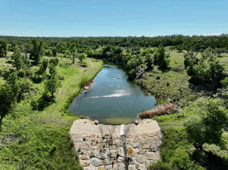 WATER: The highlight of the property is the 4,600ft of both sides of spring-fed Long Branch Creek. Two spillways have been constructed along the creek to create two beautiful lakes that ensure year-round recreation. According to the owners, this creek has never stopped flowing since they owned the property, even during the recent drought. There is one water well on the property along with the high capacity rainwater storage system.