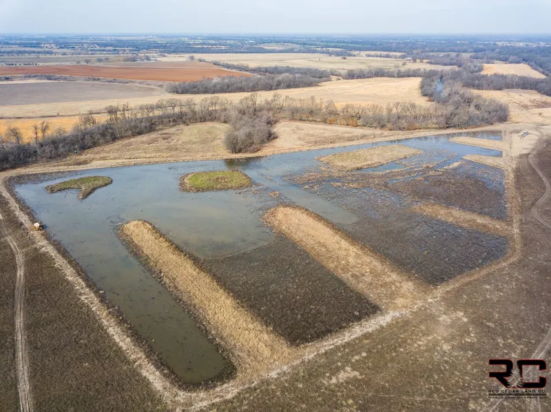 Bordering the famous Kansas Army Ammunition Plant this 263 acre farm is what most folks dream about. The farm has been meticulously groomed and designed to maximize its hunting potential. The showcase of the farm is the newly built 22 acre marsh. This marsh is unique in its design and was purposely built to make the waterfowl feel comfortable throught the fall and winter. From above you can even pick out the "duck head island" stragetically placed near the blind. There are 2 additional marshes on the property and 2 WRP marshes, totaling 36 acres of surface water. Multiple Redneck blinds are on the farm with areas carved out for food plots. These plots are a huge draw for hundreds of deer a night that funnel right off the ammo plant. Labette Creek winds along the west side of the farm making a highway for the deer, perfect roosts for the turkeys and a great fishing spot in the summer.
