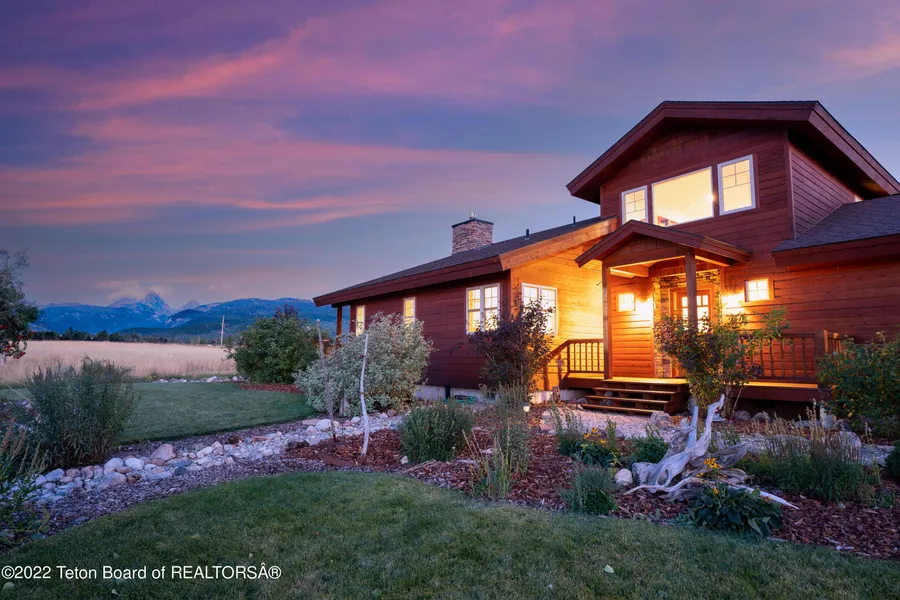 This 2,173 square-foot craftsman style home is sited on a spacious 1.59-acre building site, at the foot of the Tetons, with superb Grand Teton views and features cathedral ceilings, open living area, 2-bedrooms, 3-bathrooms and a loft that is perfect for a home office, tv room and overflow sleeping. Both the great room and main floor primary bedroom suite face east and floor to ceiling windows provide unobstructed Grand Teton views and abundant natural light. The second bedroom and bathroom are located on the main level as well and include a hallway pocket door that can be closed to create a junior suite for additional privacy. The home offers beautiful landscaping, mature trees and raised garden beds, that can be enjoyed from a covered east facing deck.