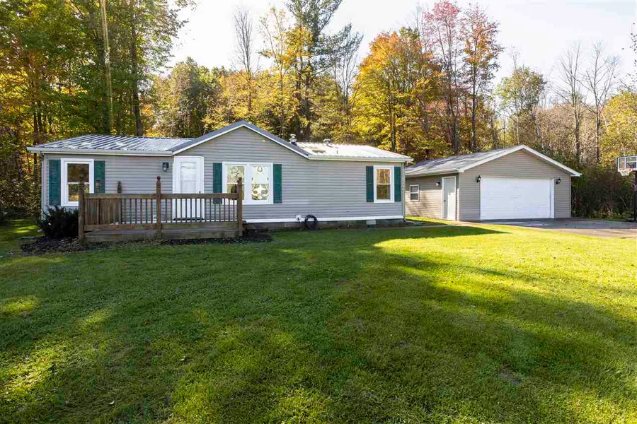 Newly updated ranch home features 3 bedrooms with a split floor plan, 2 full bathrooms, city water and over an acre of land! New paint, new flooring, a newer furnace & hot water heater and a steel roof, everything is done for you. The detached garage has plenty of storage and trails to go around the property. Come on and check this out! Call for a showing!