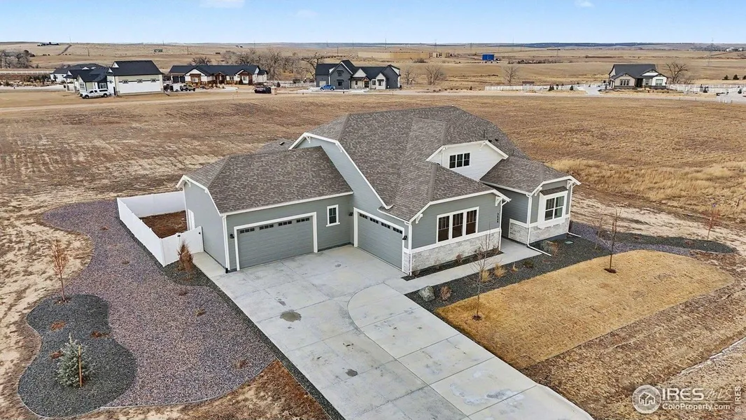 Welcome to wide-open living on 1.5 acres in the desirable Saddler Ridge subdivision of Severance. This spacious ranch-style home offers an open, functional layout with room to gather, relax, and grow-both inside and out. The main level features a bright living area with a cozy fireplace, complemented by fresh interior paint throughout the home. The kitchen is designed for everyday living and entertaining, offering quartz countertops, stainless steel appliances, a large island, and ample cabinetry. The primary suite provides a peaceful retreat with an ensuite bath and walk-in closet, while additional main-level bedrooms offer flexibility for guests, offices, or hobbies. The finished lower level expands the living space with a large recreation area, two additional bedrooms, and a full bathroom-ideal for movie nights, multigenerational living, or guest accommodations. Outside, enjoy big-sky views and plenty of room for outdoor living, gardening, play, or future projects. The 4-car garage provides ample space for vehicles, tools, and toys. The neighborhood allows outbuildings and ADUs (buyer to verify), offering rare flexibility for workshops, barns, or guest spaces. Located just minutes from Windsor, Timnath, and Fort Collins, this move-in-ready Severance property delivers space, functionality, and a relaxed Northern Colorado lifestyle.