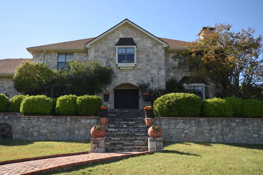 Old World Charm best describes this European Country, low maintenance home with total rock exterior. Exceptional views, privacy, and 4101 SF. of quality custom details throughout, with recent updates. Striking kitchen with breakfast area, formal dining, two living areas, two fireplaces, plus a large versatile room for office, recreation/workout or hobby room. Spacious bedrooms with views, large closets, and abundant storage throughout. Wonderful home for entertaining inside & out. Other features: Grand Entry w/Double Doors, brick paver walkways & patio, beautiful HOA Water Park, 2.2 park-like acres, fenced yard for pets, garden area, large water storage tank. Country Living close to town. Convenient to shopping, medical, schools, easy commute to San Antonio and Fredericksburg.