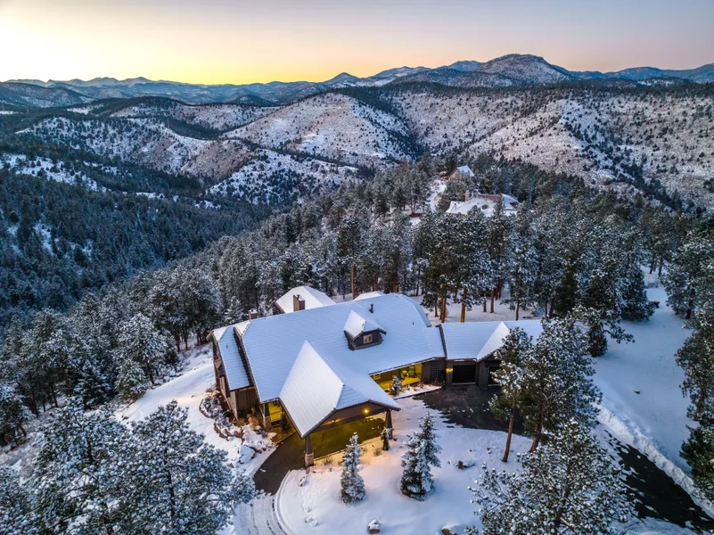 Impressive in its high quality finishes & captivating snowcapped mountain views, this well built home offers all you've been seeking in ultimate Colorado living. Located within a gated community of 6 homes set on large acreage lots, this property is 5 minutes from I-70, 30 minutes to downtown Denver & directly in front of stunning Continental Divide views so rarely seen from a residential property. Top-end remodel, open floor plan & main level living provide for everyday comfort & grand entertaining! A circular drive leads to a porte cochere for guests & a 4 car oversized garage for the family. Front deck coaxes one to take a moment to relax & enjoy the serenity. Glass entry opens to a wide foyer that points toward the great room, snowcap views & wide view deck. Expertly laid marble flooring radiates heat through the foyer, great room, hearth room & kitchen. Engineered dark stained hardwood in the dining room master & den provide a handsome compliment. Antique doors, vanities & stained glass, reclaimed beams, barnwood & built-ins, natural stone walls & countertops, one-of-a-kind lighting, hammered copper plus custom wrought iron fireplace enclosures, banisters & railings mingle together throughout the home to create its unique pallet. Main level living features a mud room with cubbies, access to enclosed dog run & brick flooring that extends into the roomy laundry, powder bath & walk-in pantry. Thermador appliances include refrigerator, 2 refrigerated drawers, microwave, 6-burner range with griddle, oven, steam oven, warming drawer & pot filler; Miele dishwasher. Two undermount hammered copper sinks are equipped with reverse osmosis & insta-hot. Raised bar seating, hearth room, 2nd dining area & great room all open to one another. Den off luxurious master could be a nursery. Walk-out focuses on the view featuring 2 en-suite bedrooms, bonus room for study or gym, 2 Jack 'n Jill bedrooms, recreation room, 2nd kitchen, pantry, theater + 2nd laundry/storage/workshop.
