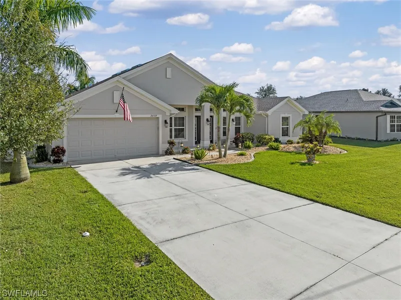 With motivated sellers and a recent price improvement, this charming property is now even more appealing to potential buyers. Offering a seamless blend of modern comfort and timeless Florida charm, this home promises an idyllic living experience. Located in a peaceful neighborhood, it provides a tranquil escape while still being conveniently close to all amenities. This 4-bedroom, 2-bath, 2-car garage home, built in 2018, features a well-appointed kitchen with granite countertops and new stainless-steel appliances, overlooking a spacious tiled living and dining area. The master bedroom, positioned at the back of the home, boasts two walk-in closets and a newly tiled master bath. The remaining three bedrooms, situated on the opposite side, each offer generous closet space and share a full bath. Step outside the living room to discover the heated saltwater pool, enclosed by a screened lanai—an ideal spot for outdoor dining, swimming, and relaxation. The meticulously landscaped lot ensures privacy and showcases updated irrigation systems and landscaping stones. Owner upgrades include a new roof, 50A generator connection, dual fuel manual 12KW generator, whole house interior painting, under cabinet lighting, and new smoke/fire/CO2 detectors throughout. Experience the best of Punta Gorda living with this property's convenient proximity to schools, parks, shopping centers, and dining options. Don't let this opportunity slip away. Whether you're a first-time homebuyer, a growing family, or seeking a peaceful retirement retreat, this home offers everything you need and more. Schedule a showing today and discover the allure of this house for yourself! Some pictures have been virtually staged.