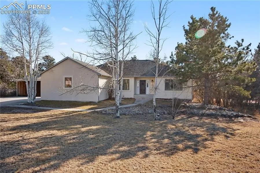 Welcome to this thoughtfully updated ranch-style home in Monument's sought-after Wakonda Hills neighborhood, set on nearly an acre of mature trees with peaceful mountain views and a true sense of privacy. Inside, an inviting open layout features fresh paint, new carpet, abundant hardwoods, and a spacious kitchen that flows effortlessly into the dining and great rooms, anchored by a striking river rock fireplace with custom built-ins. The main level offers a generous primary suite with a walk-in closet and private 4-piece bath, along with a versatile secondary bedroom ideal for guests or a home office. The finished basement adds exceptional flexibility with a large rec room, three additional bedrooms, and two full baths. With its blend of comfort, character, and space, paired with the quiet charm and convenience of Wakonda Hills, this home offers a rare opportunity to enjoy Colorado living at its finest.