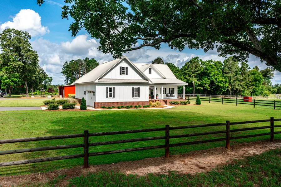 Main ResidenceThe farmhouse, totaling 3176 square feet, consists of a 3-bedroom, 2-bath home completed in November 2020. It boasts a custom-designed open floor plan with covered front and screened back porches overlooking the pastures and Chestnut orchard. The architecture of the home, barn, and improvements adapts to the landscape and complements the farm with a modern and cozy feel.