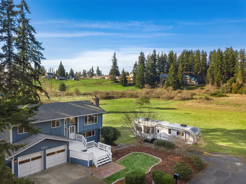 Incredible opportunity to own a beautifully remodeled home plus have acreage, the best of both worlds. Step into this amazing light & bright home with an open kitchen, vaulted ceiling eating area with a entertaining deck adjacent. The lower level has plenty of space for an ADU or really cool home office! No expense has been spared in the updates, all top of the line finishes including a whole new studs out kitchen with new wiring, lectus cabinets, quartz countertops, LG double oven, new Samsung frig/dishwasher/microwave, new lighting. All new bamboo flooring on the main floor plus all new doors and hardware. The list goes on. PLUS, you have an open pasture for gardening or even add a barn for horses, the possibilities are endless