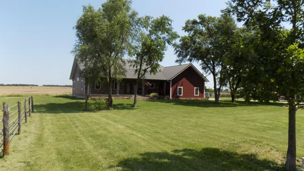 Beautiful, Spacious Ranch Style Country Home on 9 Acres. This large home built in 2014 features 5 BR, 4 1/2 Bath, 5077 total sq. ft., 3928 sq. ft. finished, full finished basement with egress windows, large 25x32 2 car garage with a 50 amp RB hook-up outside. The home was designed with quality in mind inside and out. Features include custom hickory cabinets, walk-in pantry, built in double convection wall ovens, gas cook top, hardwood floors, LVT flooring in bath, Onyx showers and vanity tops, stone gas fireplace, dedicated office/library with built in desk and shelves, six panel solid wood doors, vertical well GEO thermal water furnace for heating and cooling, 9 ft. ceilings, vaulted living room and master bedroom, 2x6 construction, Hardy Plank concrete siding, metal roof, stamped color concrete patio, porch and sidewalk and much more. The 9 acres has mature trees. 1 nice pond, a 30x80 open sided storage barn and various other out buildings. Additional acreage is available. For an outlined aerial and location map, email the listing agent. Taxes are $5138.
