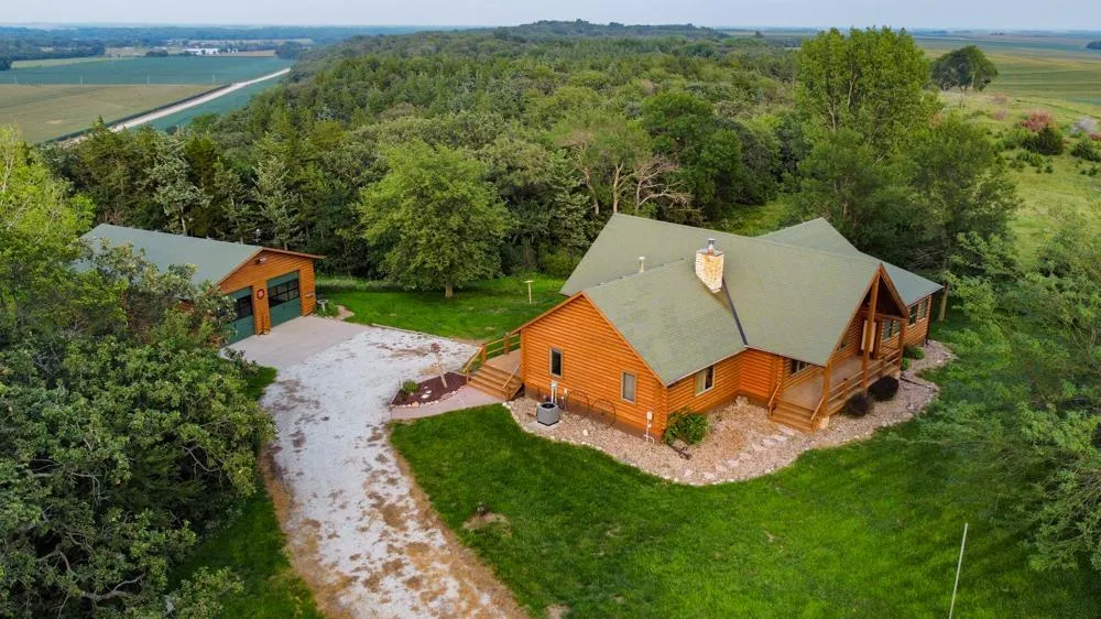 Nestled in the hills overlooking the Platte River bottom sits this secluded and quiet custom log home estate in northern Saunders County, Nebraska. With just over 35 acres, this property is the perfect combination of size, location, and attention to detail. The property consists of rolling hills skirted with mature cedar and hardwood timber and capped with lush native grasses surrounding the home site. Not a neighbor in sight except for the plentiful wildlife that call these bluffs home, including a healthy population of deer and turkeys. Open hilltops and deep ravines make for both perfect habitat and hunting opportunities.