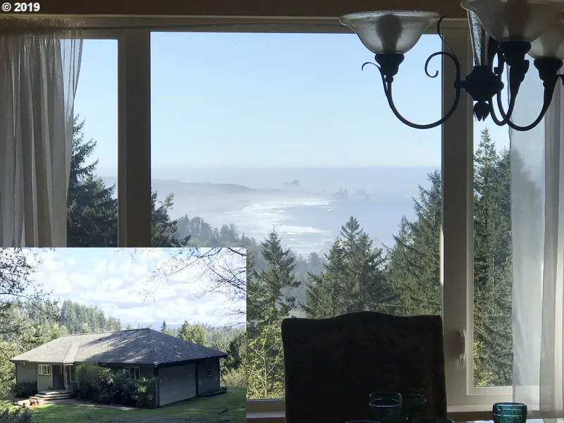 Ocean View home in good location out of town on 3.06 Acres. Custom built 2000+ SQFT home, high ceilings, gas fireplace, open style living, kitchen and dining. South West facing Ocean View deck overlooks yard. Master Suie has big bathroom, walk in closet and door to deck. DB Garage has Ocean View office space. Less than 2 miles to Beach, Pistol River and the Oregon Coast trail system.