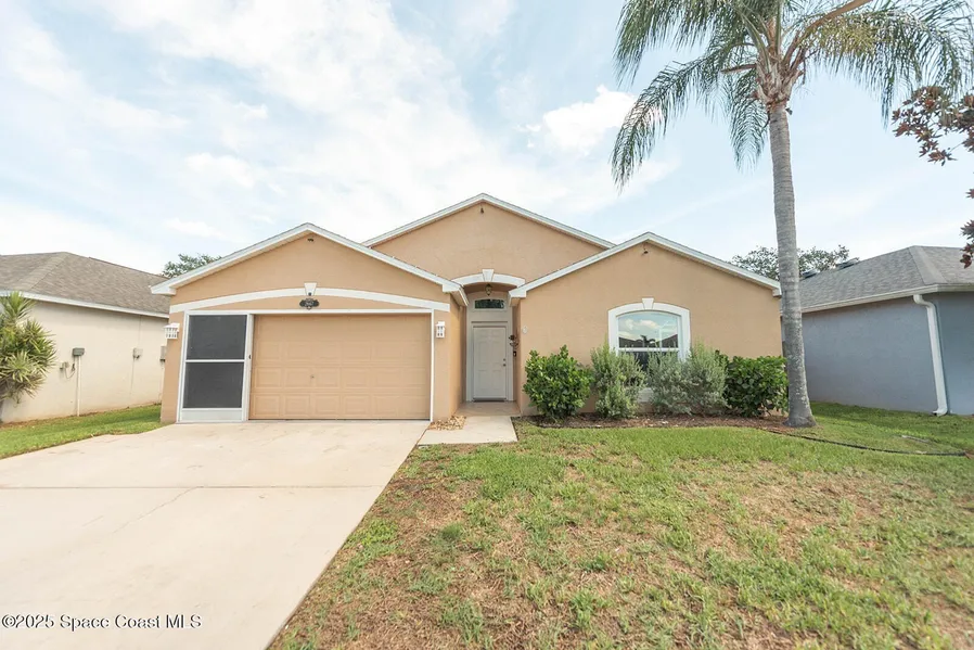 Welcome to this beautifully maintained 3-bedroom, 2-bath home in the highly desirable Bayhill at Viera community in Melbourne, FL-perfect for families! Step inside to an inviting entryway that opens to a spacious, light-filled floor plan with gorgeous distressed wood-look flooring throughout. A flexible dining space offers room for formal meals or casual gatherings, while the large family room with elegant tray ceilings creates a warm, comfortable setting. The chef-style kitchen is ideal for entertaining, featuring abundant counter space, natural-tone cabinets, and a functional open layout. The luxurious master suite includes a garden tub, separate shower, and walk-in closet. Enjoy the convenience of a separate laundry room with extra storage. Outside, a generous backyard with a large patio is perfect for play or relaxation. Families will love the community pool and playground. This private, tucked-away development is just minutes from top-rated schools, shopping, and dining.