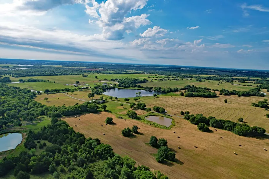 Nestled by Durant, this gorgeous 4-bedroom, 2.5-bathroom farmhouse is situated on a sprawling 50 +/-acre property, offering a perfect blend of modern comfort and rural charm. Step inside to discover a spacious, open-layout home that has been beautifully updated throughout. The heart of this residence is the stunning kitchen, featuring ample countertop space, sleek stainless steel appliances, a bar top, a natural gas range, and a large-capacity professional refrigeratorideal for both everyday living and entertaining. Situated in the highly desirable Durant School District, this farmhouse is perfectly positioned to enjoy both privacy and convenience. The land boasts a spectacular 7 +/- acre pond, stocked with fish, creating a serene and picturesque setting.