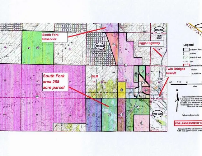 Research Parcel InformationTake the Lamoille Highway South out of Elko and in approx. 5 miles you'll come to a Stop light where you need to turn right (South) on the Jiggs highway. Go approx. 14 miles South to the turn off for Twin Bridges (Right) go approx. 2.5 miles SW to the road that accesses the subject property. You will have crossed the South Fork of the Humbold River and you will be Huntington Creek (Also known as Smith Creek) on your left.