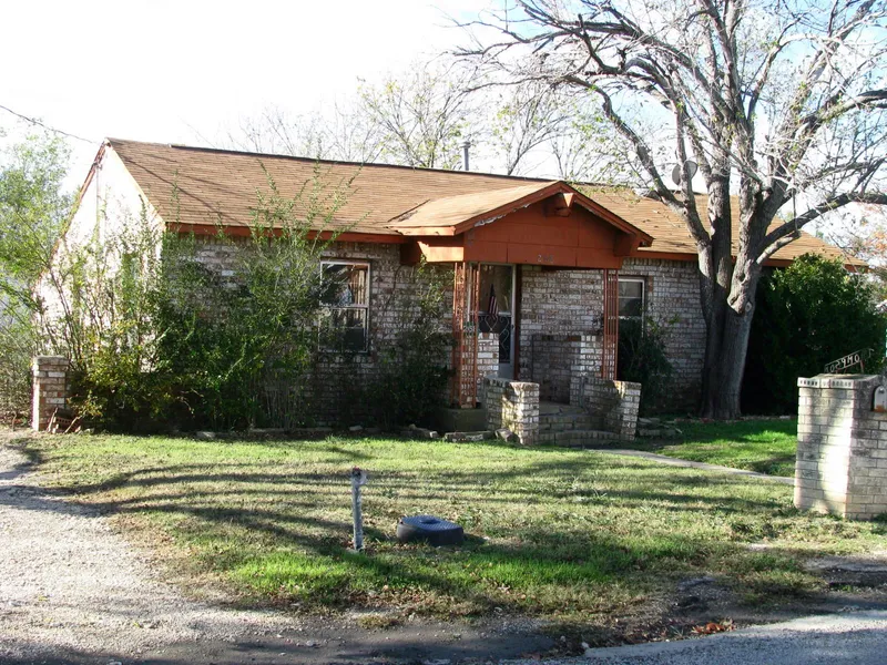 2 Br 1 Ba brick home on E Brooks St, in Evant, TX. The home has hardwood floors, screened in porch, carport with workshop, and is on 2 lots. The home is in need of repair but would make a good starter home.