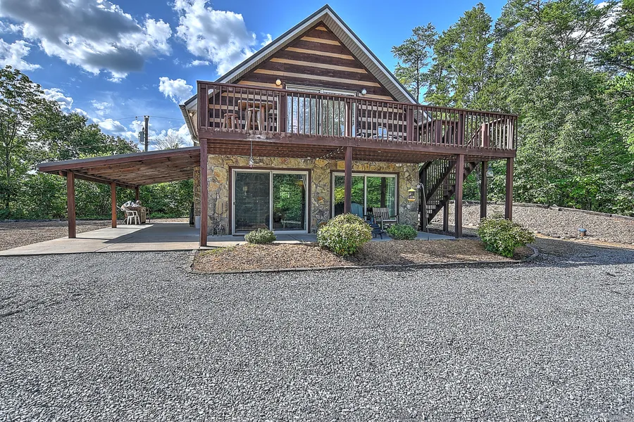 Looking for that mountain getaway? Only minutes from Greeneville, but very secluded and private with wonderful views. A frame type log home with lots of outdoor spaces to enjoy: patio, decks, porches and the firepit. Open floor plan with living room, dining room and kitchen combination. The upstairs is a huge bedroom with room to divide into a second bedroom. There is a carport, stack washer/dryer, storage building. All of the furnishings stay with the home. There is a shared, recorded right of way with several other homes with a shared maintenance agreement. The home has its own well.