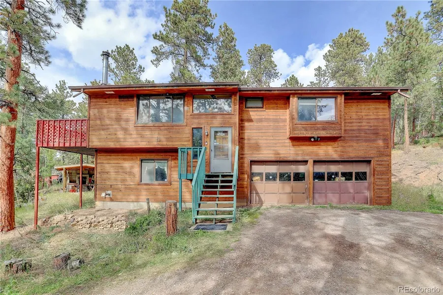 Convenient mountain living with fantastic views! This 1.4 acre cul-de-sac property features peaceful privacy & a large, wooded meadow filled with pines & aspens. Fantastic, covered patio pavilion is perfect for hosting barbeques with family & friends (& also a great spot for a hot tub!). Vaulted ceilings on the main floor with ample windows make this open floor plan light & bright. The wood beamed ceilings & Australian hard wood floors in the family & dining room are beautiful & inviting. The spacious family room showcases a beautiful, tiled nook with cozy wood stove & mantel. The adjacent kitchen is well configured & opens onto the dining room for easy living & entertaining. The sliding doors lead to a large BRAND NEW DECK showcasing amazing mountain views & is perfect for enjoying quiet morning coffee & evening cocktails. The primary bedroom suite is conveniently located on the main level & offers a ensuite bathroom, walk-in closet & stunning meadow views with a lovely window seat. The main level also features two bedrooms & a full bathroom with direct access to the rear bedroom. The lower level features a versatile great room space with pellet stove which could be used as a bonus room, gym, recreation area. There is also a flexible den area (or non-conforming possible bedroom), bathroom & generous laundry room. The lower level offers direct access to the oversized 2 car garage with separate heated work/craft room complete with sink. Septic allows for 3 bedrooms (6 people) & has been inspected, pumped & permitted. Enjoy peaceful, private mountain living with close access to 285, shopping, restaurants & schools! Top rated schools. County maintained roads & school bus route.