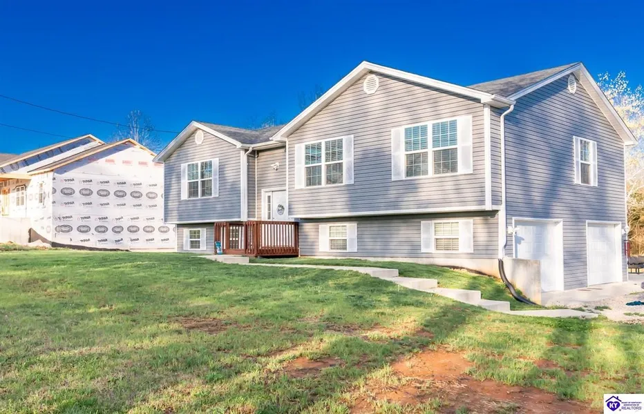 Welcome to this inviting 3-bedroom, 2-bathroom 3 year new home nestled in a peaceful rural setting just a hop, skip, and jump away from Ft. Knox. This bi-level floor-plan offers modern comforts and plenty of space for relaxed living and entertaining. Three spacious bedrooms and two full bathrooms, ideal for families or those seeking extra room for guests. Light and bright open floorpan. Step out onto the giant concrete patio or the large deck at the back of the home, perfect for outdoor gatherings, barbecues, or simply unwinding in the fresh air. The finished basement expands the living area, providing versatile space for a recreation room, home office, or additional storage. Updates include wooden custom blinds, giant versatile concrete pad poured, finished spacious basement, updated main bathroom, Added pantry and closet organizers! Embrace the tranquility of rural living while still being conveniently close to Ft. Knox, offering easy access for military personnel or employees. This property welcomes pets and offers ample outdoor space for them to roam. Bring your chickens! Don't have chickens yet? You're in the country! It might be time to get some! This is a wonderful opportunity to experience the comforts of a newer home in a serene rural environment, complemented by modern amenities and easy access to nearby attractions like Ft. Knox. Don't miss out on making this your next home sweet home!