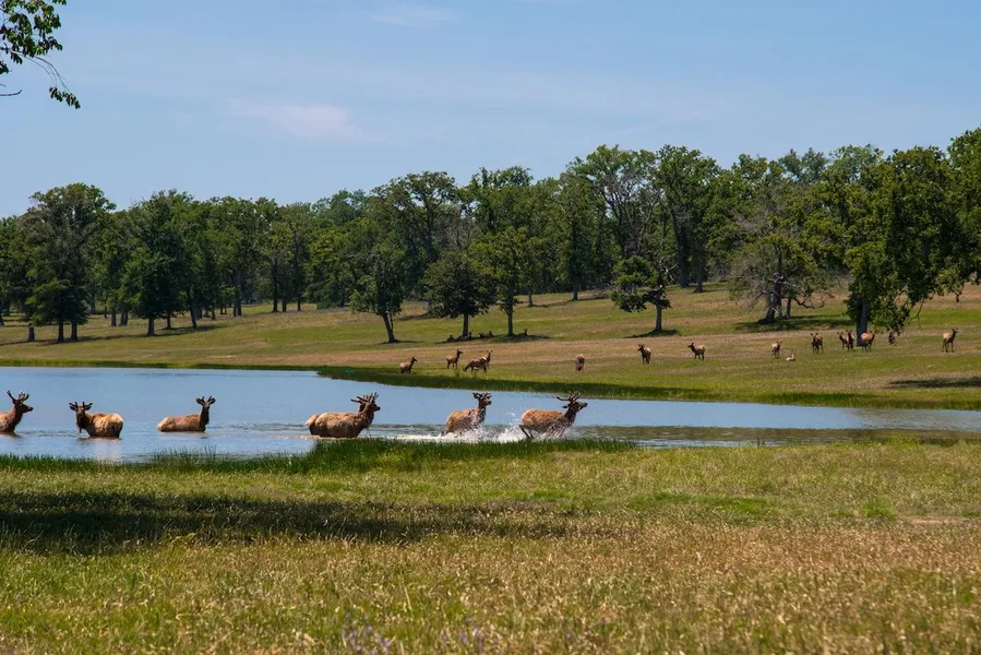 Water is supplied by five water wells providing water to all improvements and strategically placed throughout the ranch for future use. A large number of operating windmill water wells are situated across the ranch. Numerous lakes and ponds stocked for fishing and waterfowl. The Navasota River meanders peacefully through the middle of the ranch for several miles creating a healthy and fertile wildlife habitat for many species of animals and birds. A totally unique and entertaining aqua park setting with a spring-fed grotto as its centerpiece constructed in a private lakeside setting.