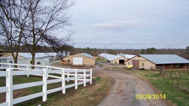 4 house poultry farm on 27.66+/- acres with nice 3200 sq. ft. 4Bd/4Ba. home. 2-40x400, and 2-40x500 houses with lots of updates, have to have very little done to transfer Tyson contract. Farm features a 80x100 drystack and a 60x80 shop/barn, acreage is fenced pasture with a pond. This one is priced to sell.