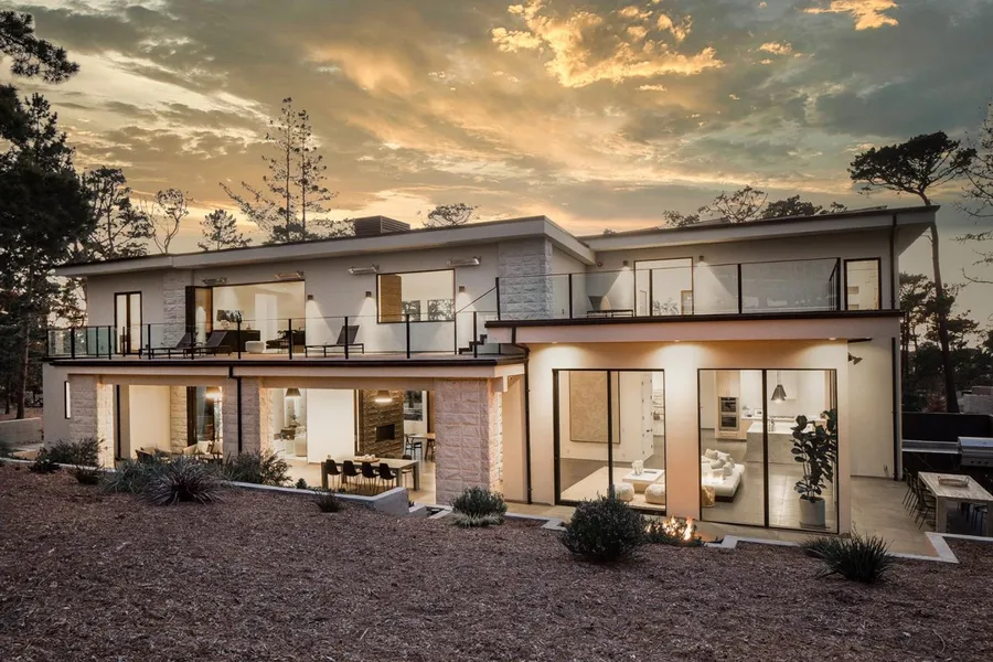 This contemporary masterpiece overlooking the 1st fairway of Poppy Hills Golf Course takes full advantage of its prime location with indoor/outdoor living spaces and walls of glass to pull in the surrounding beauty. The modern design impresses from the moment you walk through the custom metal pivot front door to reveal the sophisticated great room with custom Black Pearl granite 2-story fireplace. Located in the exclusive Poppy Lane neighborhood, the home boasts an extraordinary list of features including a custom 300+ bottle wine storage, Wolf and Subzero appliances, a floating black marble outdoor kitchen, 10 patio heaters, a green vegetated roof, fenced dog run, Nest Smart Home system, built-in Sonos ready speakers, Lutron ready window shades, 3-car finished garage, 9KW solar system, whole house water filtration and air ventilation system, and 5 suites (including a spacious master on the first floor). With peeks of the ocean throughout, 27 Poppy is pure Pebble Beach perfection.