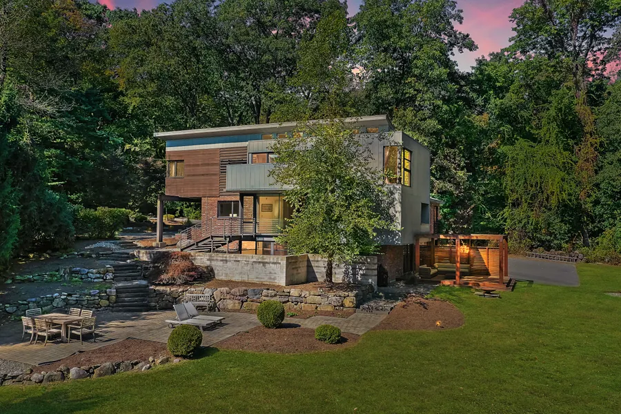 MANHATTAN IN THE WOODS - Unique custom home nestled in complete privacy. Situated on 1.44 acres on a quiet road in beautiful Boonton Twp. You are immediately greeted by the open floor plan, maple wood flooring and glass walls. Two separate great rooms give you plenty of room to relax. Gourmet eat in kitchen has state of the art appliances, bamboo cabinetry, glass back-splash and caesar-stone counter tops. First floor office can be used as a guest bedroom. Second floor has three spacious bedrooms with walk in closets. Master suite has high ceilings oversized tub and duel vanities. The views are absolutely stunning. Lower level is perfect for additional living. Full bath, kitchen, family room, fireplace and walkout. Enjoy the outdoors by entertaining on a paver patio or wood deck overlooking a large backyard surrounded by woods.