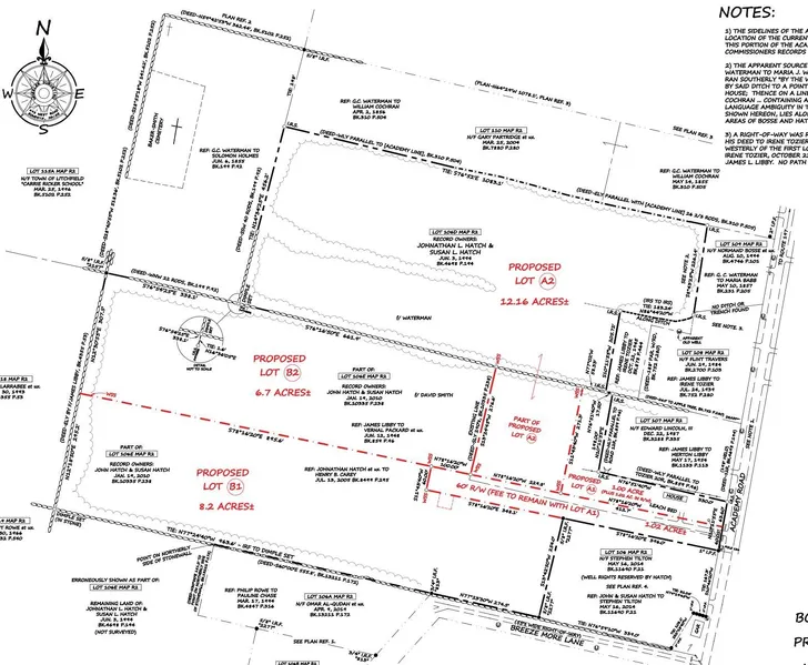 THREE SURVEYED LOTS totaling 27 acres of land in the heart of Litchfield's growing Residential-Village District. This district is specifically zoned to support higher-density residential development while preserving the town's traditional character. Limited service, retail, and municipal uses are also permitted—ideal for a flexible live-work setup or community-focused development. Strategically located on the Academy Road, this parcel offers unmatched convenience: Minutes from local grocery stores, restaurants, and gas station. Close to schools, the town office, and transfer station. Near a hardware store and a full 18-hole golf course. Enjoy boating and fishing on nearby Tacoma Lakes and Pleasant Pond. Quick access to I-295 via Exit 43. Whether you're planning a new home, a small business, or a mixed-use project, this is a rare chance to invest in a well-situated, development-friendly location. Don't miss out on this unique opportunity! Lot B1, B2 & A2 for sale individually also. See MLS# 1630185, 1630188, 1630184.